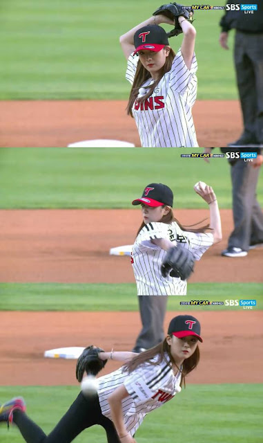 After the serve, SBS sports analyst commented, 'Bomi is good in baseball, the way she holds the ball and she's able to deliver a perfect pitch'.