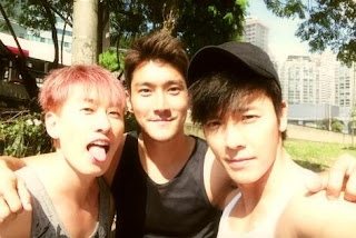 Eunhyuk reveals a photo that will heat up the summer. He uploaded a photo showing topless Siwon, Donghae and himself. He wrote, "swim swim swim~~~~~~". They are in a pool side and seems likely about to swim. Eunhyuk flaunting his abs while doing V sign. Siwon is looking sideways while Donghae is wearing a black cap.