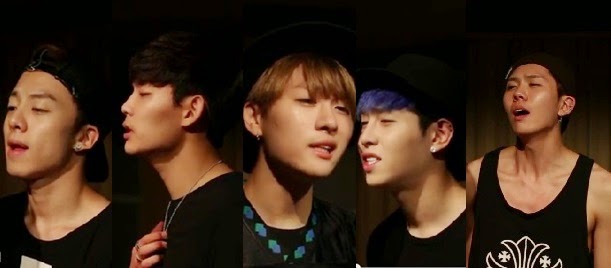 Members P-Goon, Sangdo, Hojoon, Seogoong, and Gohn are seen in a recording studio showing their other emotional side instead of their usual fierce image hitting the high notes flawlessly.