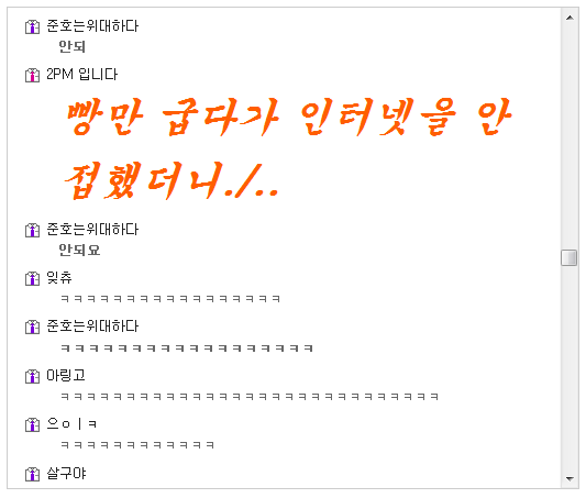 This isn't the full chat above, only what JUNHOBRAND could translate, but she got most of it! This isn't necessarily line by line, but we'll just leave it this way! ^^ Keep in mind that this is a chatroom, much like the s-box, so he's calling people's usernames out and responding to things they're saying :)