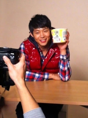 Park Yoochun recently was filming for an instant noodle advertisement and placed the cup noodle beside his face. The comparison of his face and the cup noodle showed how small his face really is.