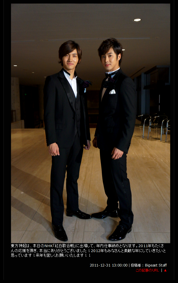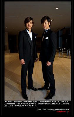 Tohoshinki will perform on today’s NHK "Kouhaku" (December 31st), and that will be their last performance for the year 2011. Thank you very much for all of your supports in 2011! We want to make 2012 a great year together with all of you! Please support us in the new year, too!