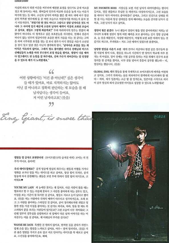 A MAN ! Compared to the nervousness feeling last time, he became more relaxed. Though it’s not yet perfect, I hope everyone would see us growing constantly. Compared to the sudden grow-up, doing it in steps, constantly growing up, isn’t it better?Use THREE words to describe Boyfriend’s new Album