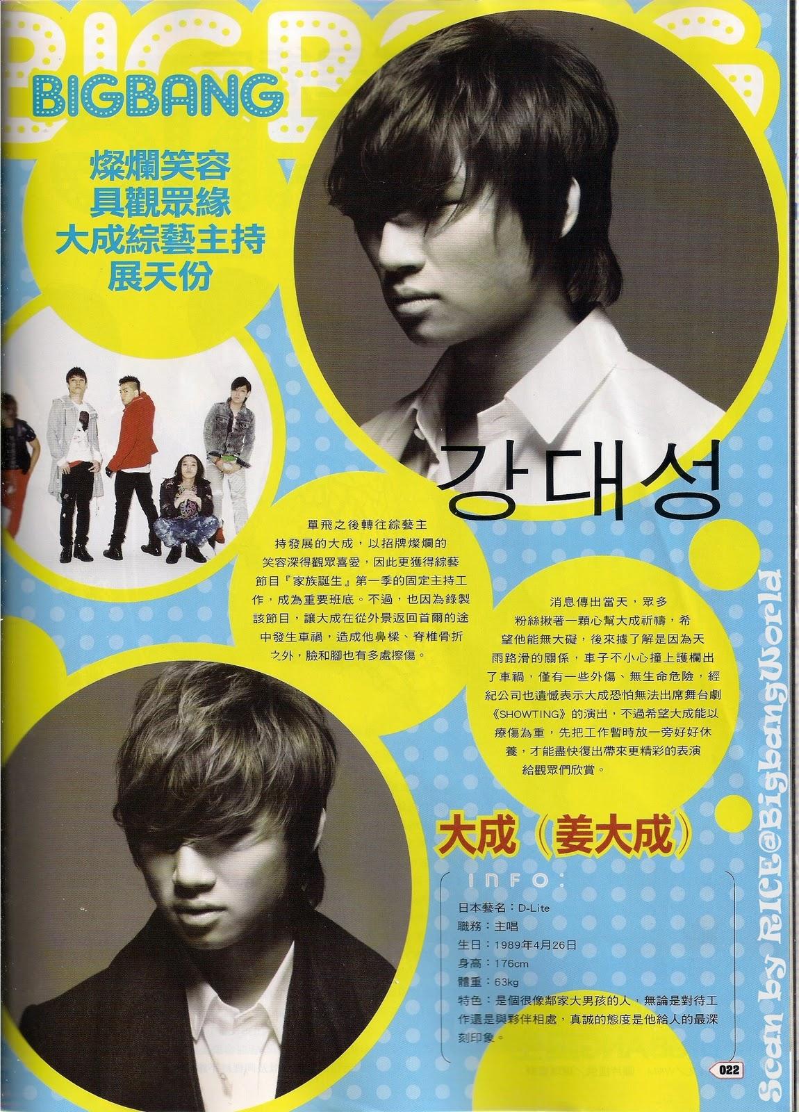 He has participated in different musicas, namely ‘ Shower’ and ‘Shouting’; and also film ‘19’ and soap opera ‘Why did you come to my home?’ . His vivid acting gained him good result in the arena of dramas and he also had collaboration with TOP. They would focus on Japan market this year and they have gained ‘The best pop music video’ and ‘best new artists’awards. When they went on the stage to receive the awards, Seungri and Taeyang recalled the bitter sweet memories after they have debutted in Japan, and it was really not easy to achieve these accompanishments,they could not help wetting their eyes. They were so moved that they nearly broke into tears. However, we really hope that they could share some more time with Korea fans later on. They have already recorded their new Korean album. Taiwanese fans can only listen to their debutted songs first to satiate their thirt. We are longing for you to come here, BIGBANG!