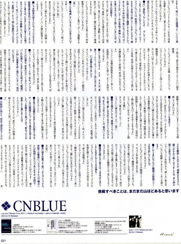 YH: We played “In My Head”at the live concerts several times before, then I feel that song was completed. And we performed some parts of our new song “Where You Are” at the concert, so that is also the highlight of this DVD.
