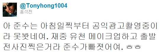 T/N: Tony Hong’s Korean name is Hong Seok Cheon. He is a South Korean actor, entrepreneur and JJ’s hometown friend.