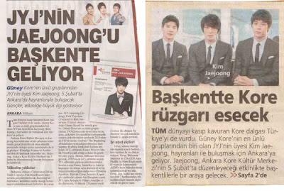 All 600 fan meeting tickets were sold out in 30 mins after the Korea Cultural Center made an announcement that they would be distributed on first-come first-served basis. In a few hours, more than 2,000 requests were received, confirming the power of Hallyu wave in Turkey. Calls from fans who could not get the tickets swamped the Korea Cultural Centre and the Korean Embassy. Turkish fans hope that the fan meeting will cause the opening of more events and performances from entertainers. Meanwhile, on Feb. 1, Miliyet, a Turkish daily newspaper introduced JYJ and provided details on Kim Jaejoong’s fan meeting.
