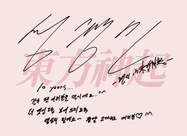 Changmin's message is,"10 years...Thanks to all our fans. I will work at my best to show a more charismatic self. Thanks a lot everyone."