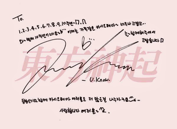 Yunho and Changmin wrote handwritten messages to express their gratitude to Cassiopeias.