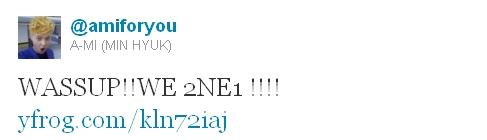 He tweeted, "WASSUP!!WE 2NE1 !!!! " and posted a group photo.