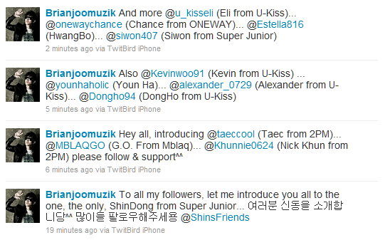 Brian was seen introducing his idol friends to his followers on twitter a moment ago.