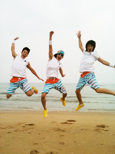 Looking at their clothes, they seem to be recording for Dream team and they should be fliming at a beach, looking at the background. Three of them look so cheerful maybe because its a great bright morning and they are doing what they love to do- sports. Netizens commented saying that eunhyuk and the 2 of them are ' sunny' boys.
