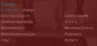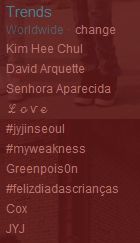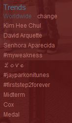 As you all see Kim Hee Chul is on the top of the list. There's a time where Kim Hee Chul drops to second but manage to go up again within a few minutes. You will also notice that Kim Hee Chul name keeps changing to Skin Kim Hee Chul to Kim Hee Chul ~☆. Not only those names are trending but also Milk Skin and Chul also for Kim Hee Chul.