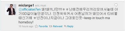 Translation: @officialse7en Why! Why!! Just me!!! hehe I remember a long time ago when we gathered we used to play with baby GD. Now he's grown so much and become an adult man, it's interesting seeing him on TV hehe Back then or now, you're still the same~ keep in touch ma homeboy!