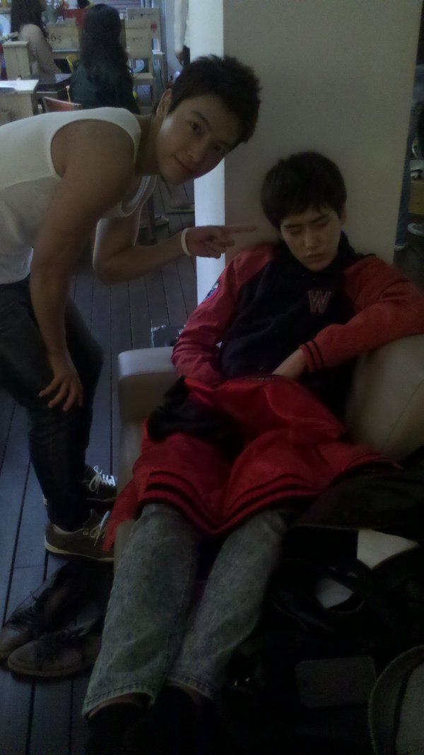 Shindong posted up a picture of their maknae Kyuhyun wrapped in a jacket sleeping peacefully while Donghae pointing at him.