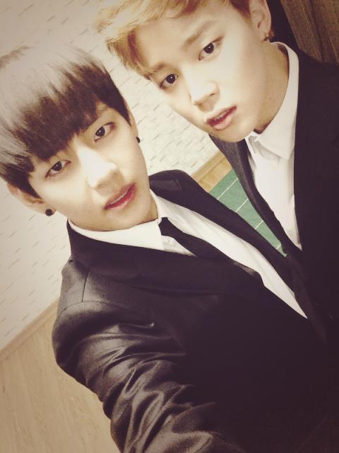 Trans @bts_twt : Because a hyung from our company was getting married, we went to his wedding~ I took a photo with TaeTae kk wow pic.twitter.com/LX60lcB5TF [Jimin]
