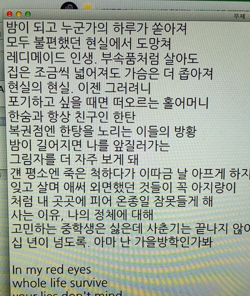 @bts_twt : 나는 랩몬.. 손에 잡히는 대로 이것저것 해보고 있다. 이건 떠오르는대로 그냥 써보다가..! 완성할 지 안 할 진 모르겠지만?! [Rap Monster]