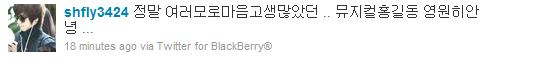 Super Junior Yesung tweeted just a moment ago again! I guess he's a twitter addict now, haha. Twitter is really addictive, especially to Suju members, isn't it?