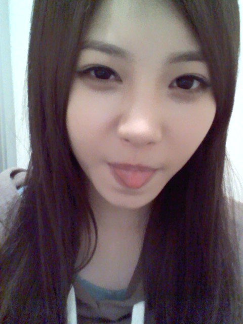 In the pictures she is sticking her tongue out and making cute faces.