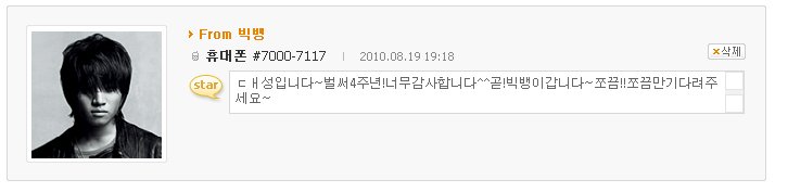 TRANS: it’s dae~ sung! It’s 4th anniversary! wow thank you ^^ SOON! Bigbang is coming~ Just in a moment! Just wait for a very short time~