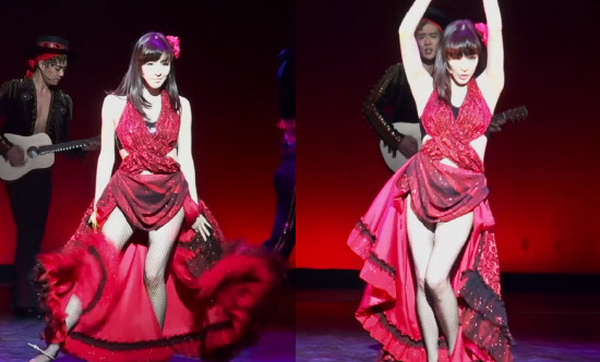 She is seen wearing a red hot outfit during her latest performance for the Musical.