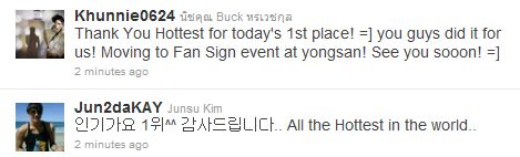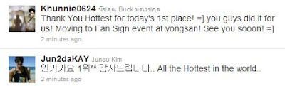 Trans for Junsu: Inkigayo 1st place^^ Thank you...