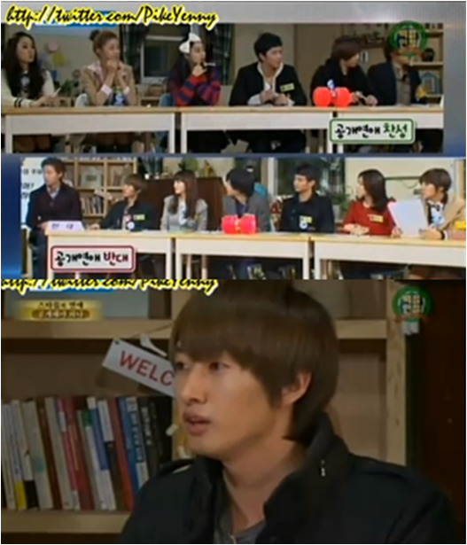 Some strong points made were "For a female celebrity, it's the same as getting married" and "Your problems become everyone's problems so I'm against it." by Rainbow's Jaekyung whom was chosen as the best for the discussion. While personally I felt that an argument made by Hyeonjin was also strong, he said "Will you only live for your fans?".