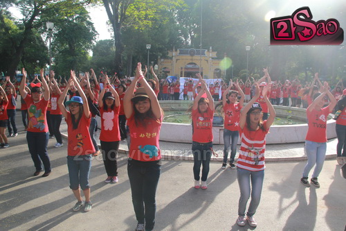 After nearly a half month of planning and preparation, approximately 500 young people gathered at the square in front of the Hung King temple to participate in a flashmob to welcome Kim Jae Joong's upcoming fan meeting on November 10 in Ho Chi Minh city, Vietnam.
