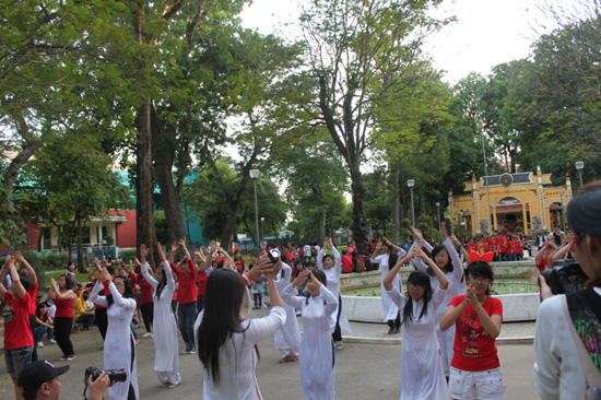 In particular, Vietnamese fans impressed by wearing traditional clothes - "Áo dài" to create a really unique and interesting flashmob.