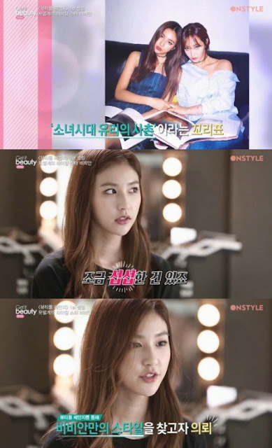 On the new corner of OnStyle's "Get It Beauty" called "Beautiful Change", Vivian appeared as the first guest. She shares her candid thoughts, "Before, many people don't know about me. They know me as Yuri unnie's cousin. It's kind of disappointing.