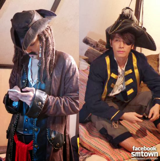 The photos were uploaded on Super Junior's Facebook account. We could see the members lying on the ground wearing pirate's costume. The setting is completely turned into a pirate's camp complete with necessary props.
