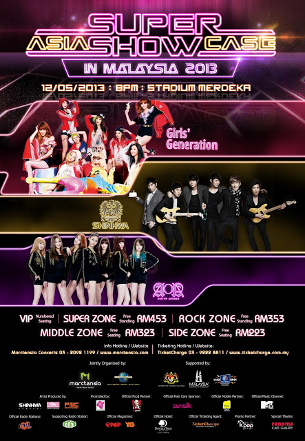 For your information, Girls' Generation, AOA and legendary group Shinhwa will perform at the Stadium Merdeka in Kuala Lumpur on 12th May, our partners Marctensia and Universal Malaysia provided us 2 rock zone and 4 side zone tickets for a giveaway.