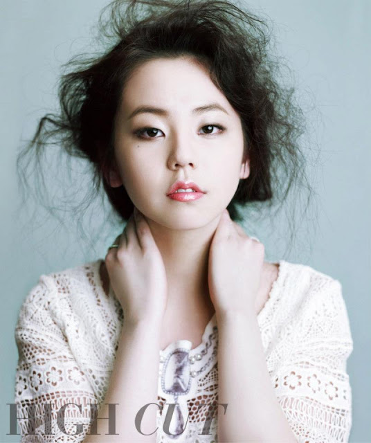 In the photos, So Hee looks ethereal with subtle make-up and white lacy dress, her clear and fair complexion seem to glow against the pale blue background.