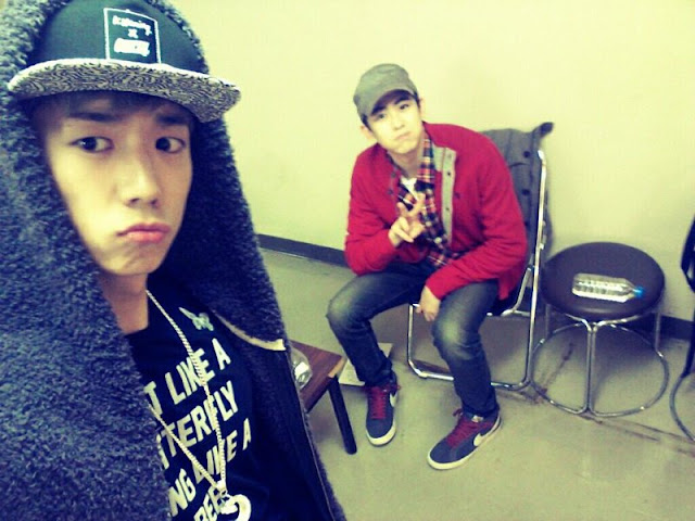 He is seen posing with Nichkhun who is sitting on the chair, showing their cute expressions.