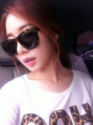 She transforms into an autumn girl wearing a pair of leopard frame glasses and t-shirt with leopard fonts.