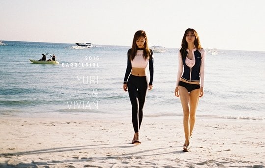 Together with her cousin Vivian, the two sexy ladies model for Barrel Girl and new promotional photos of them are released. We have seen Yuri wearing rash guards from the previews photos but this time, Yuri flaunts more skin and sexier poses.